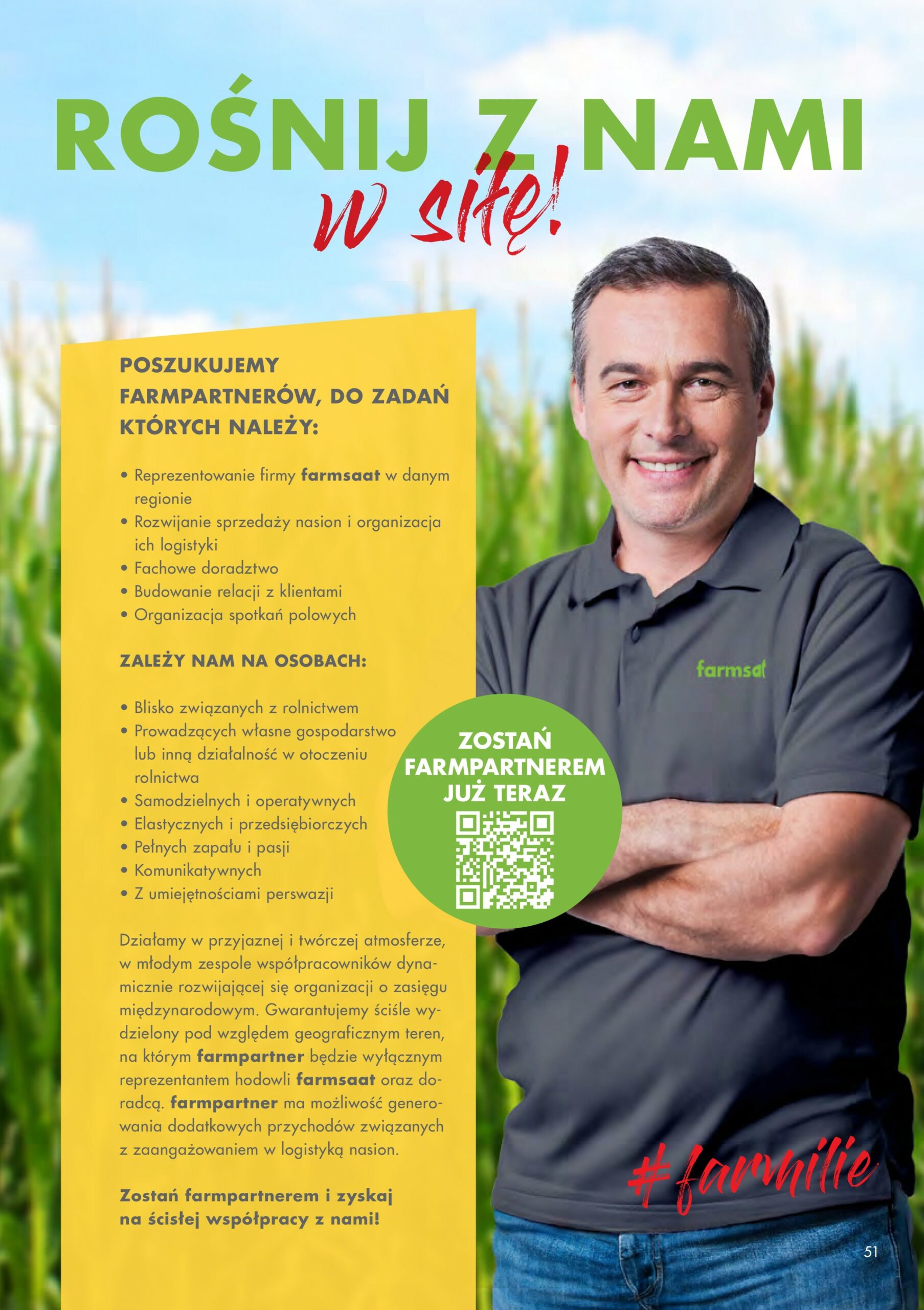 Działamy w przyjaznej i twórczej atmosferze, w młodym zespole współpracowników, w dynamicznie rozwijającej się firmie o zasięgu międzynarodowym. Gwarantujemy ściśle wydzielony pod względem geograficznym teren, na którym farmpartner będzie wyłącznym reprezentantem naszej hodowli oraz doradcą. farmpartner ma możliwość generowania dodatkowych przychodów związanych z zaangażowaniem w logistykę naszych nasion.